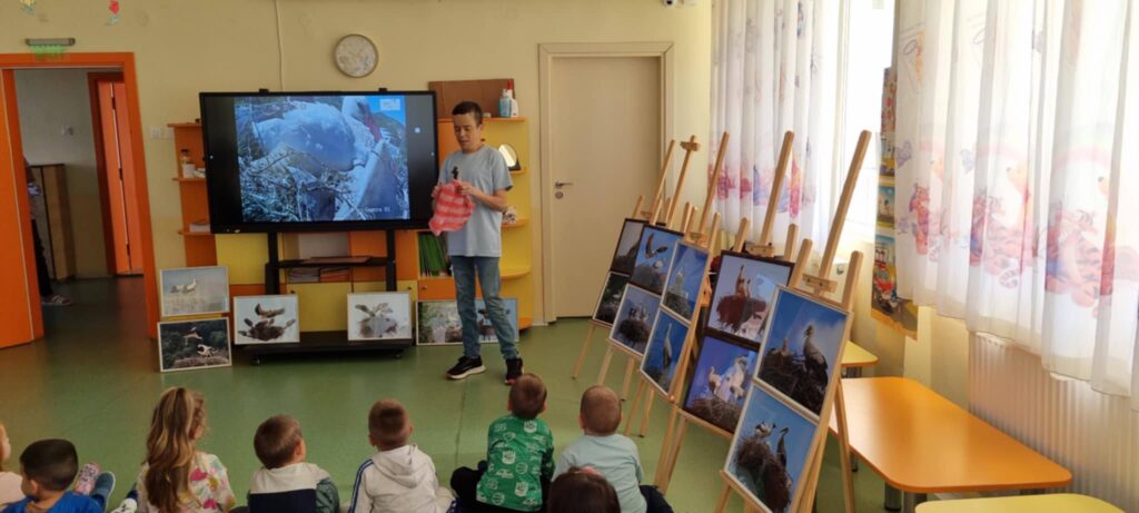 По покана на директора на детската градина Ина Иванова, представихме нашата пътуваща фотоизложба „Животът на белия щъркел“, която развълнува децата и ги направи съпричастни към опазването на този емблематичен за българската природа вид.
